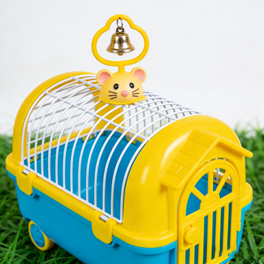 Animalien kaiola urdin-horia irudian erakusten den bezala, animalia txikientzako bereziki diseinatua, saguaren buru dekorazio polita eta urrezko kanpaia dituena. Handizkako prezioa $ 12-15 / unitate (MOQ-n oinarrituta), gutxieneko eskaera 100 unitate, funtzio pertsonalizazioa eta etiketa pribatua onartzen ditu.